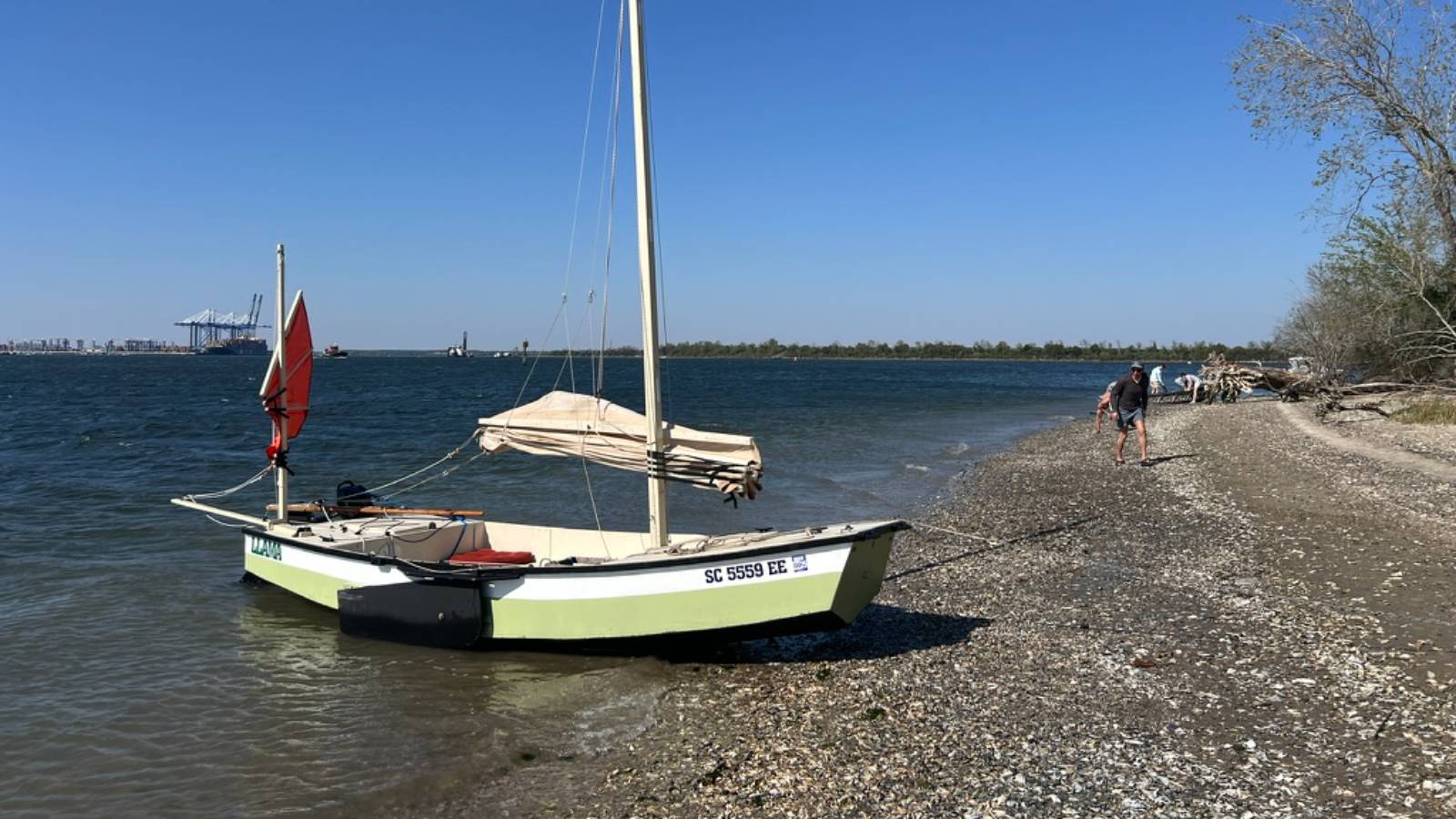 We made the entire trip down the Cooper River toward Charleston Harbor on one long tack, sliding under the Ravenel Bridge with that feeling you only get when the day starts hard and suddenly becomes easy. A couple of friends spotted us near Cooper River Marina and snapped a photo that made the whole outing look graceful.